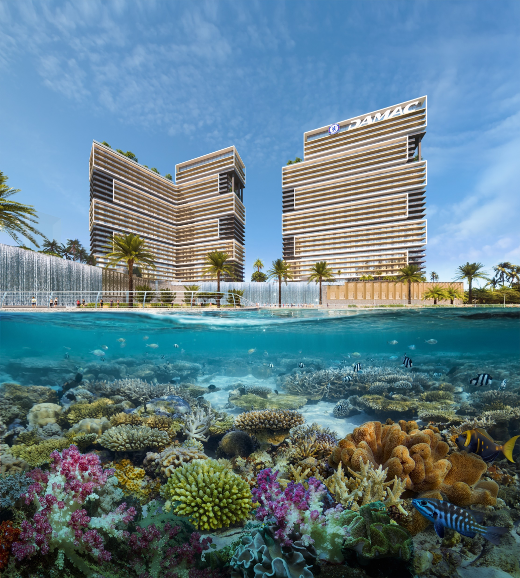 · 滨海生态设计:珊瑚礁主题园林 + 水下儿童区,270° 海景落地窗