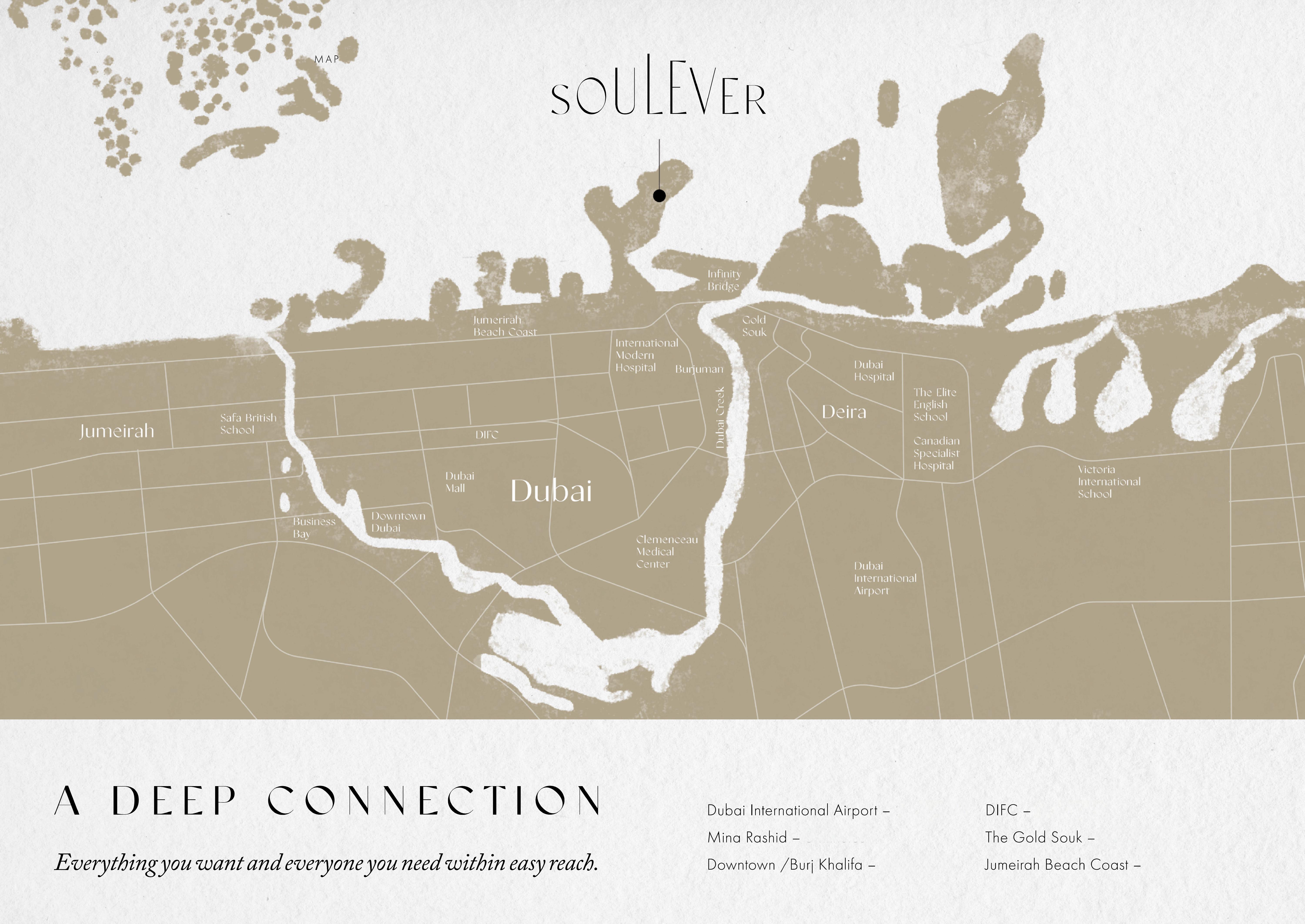 项目地理位置优越,通达性高。通过 Infinity Bridge 快速连接城市各处,可便捷抵达 Dubai International Airport、Downtown Dubai、DIFC 以及 Gold Souk 等重要地标与商业区。![]()