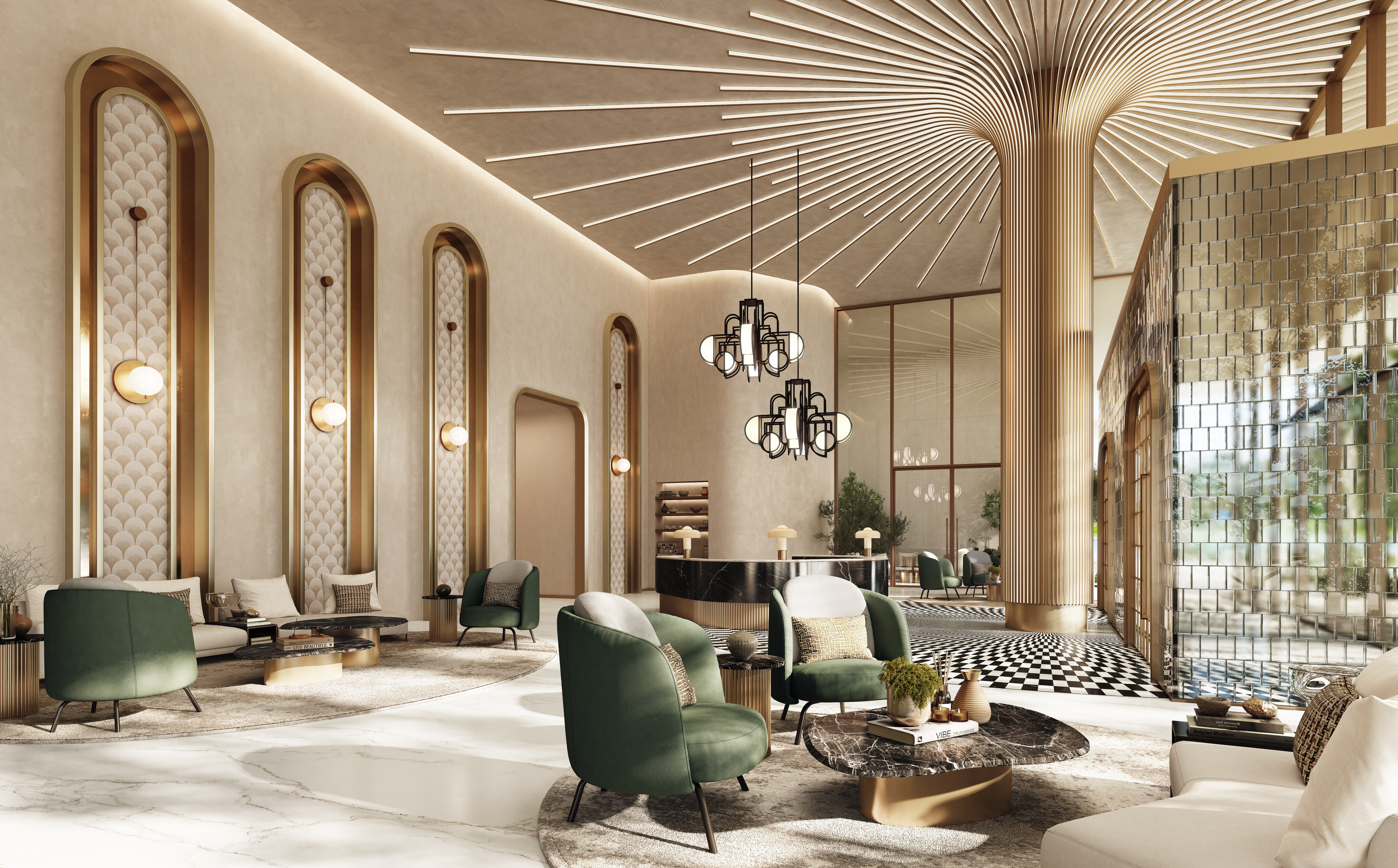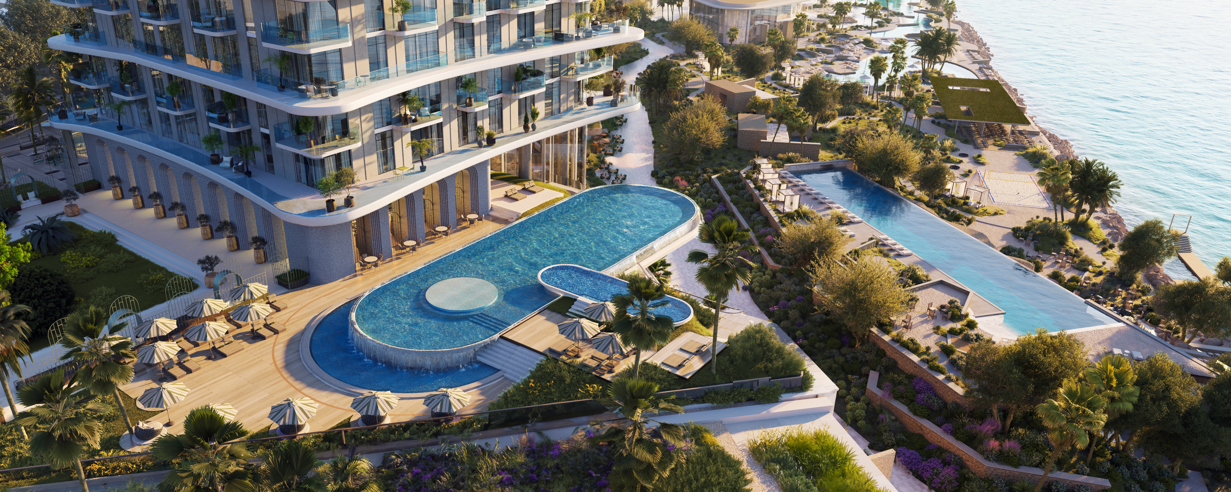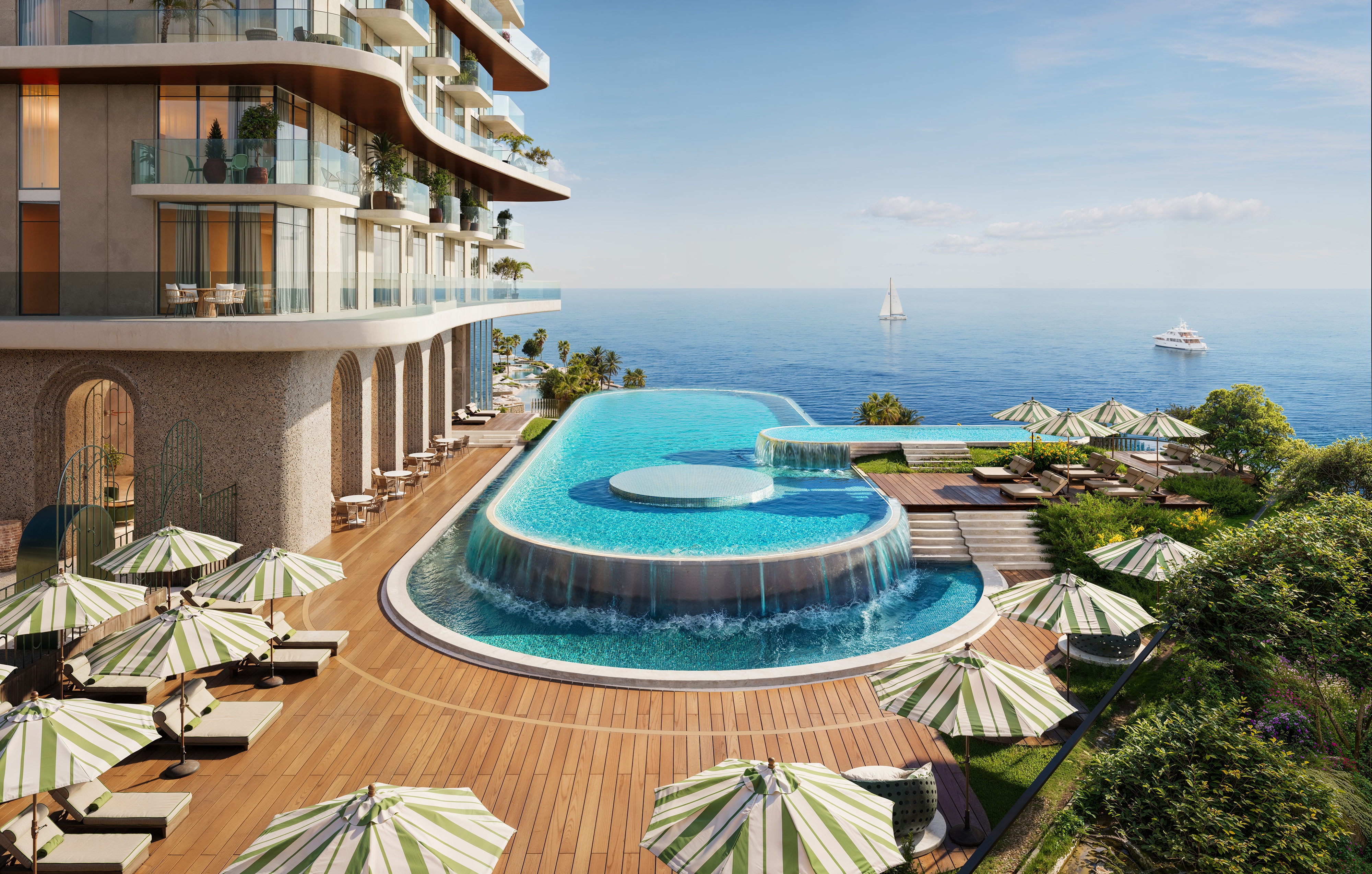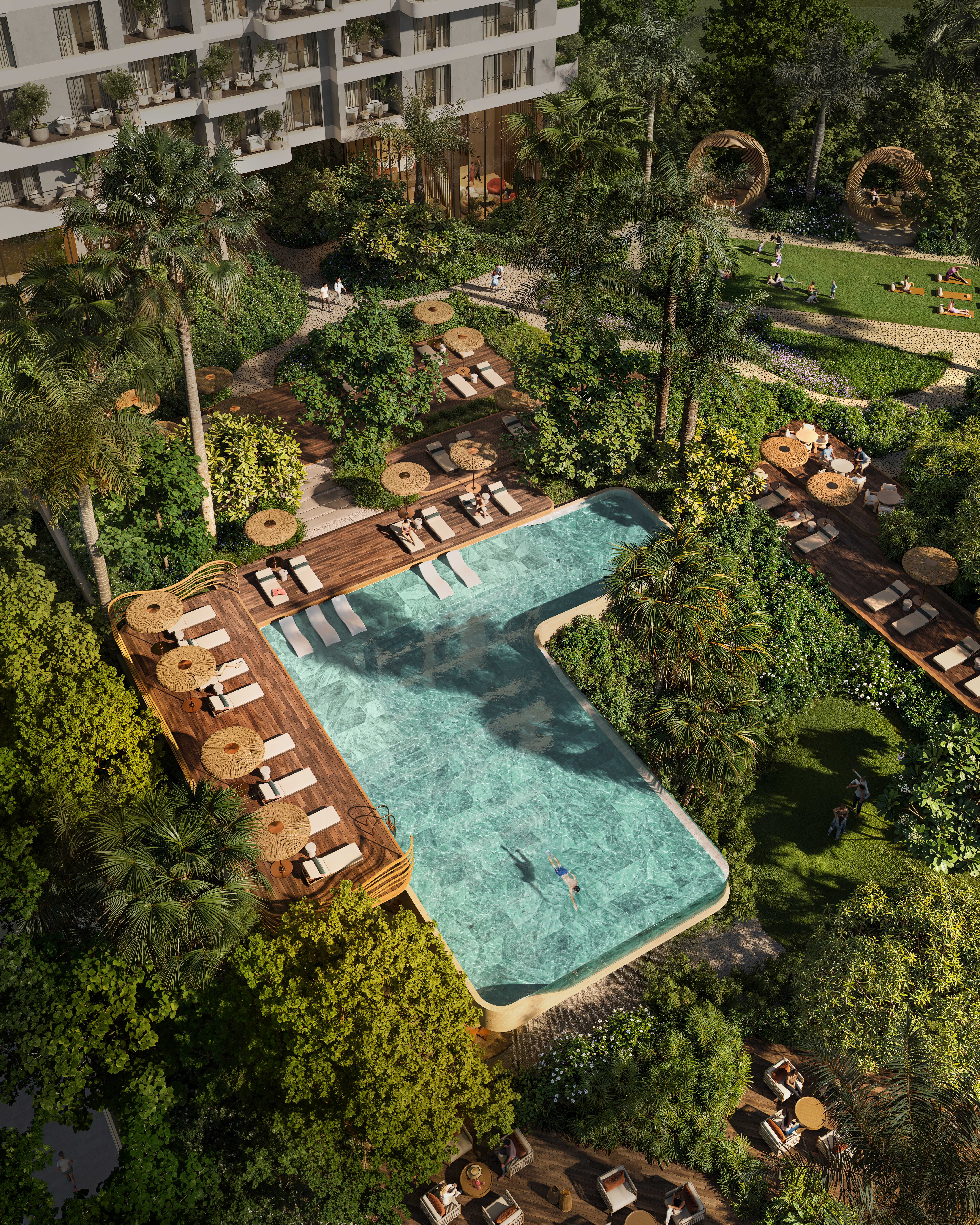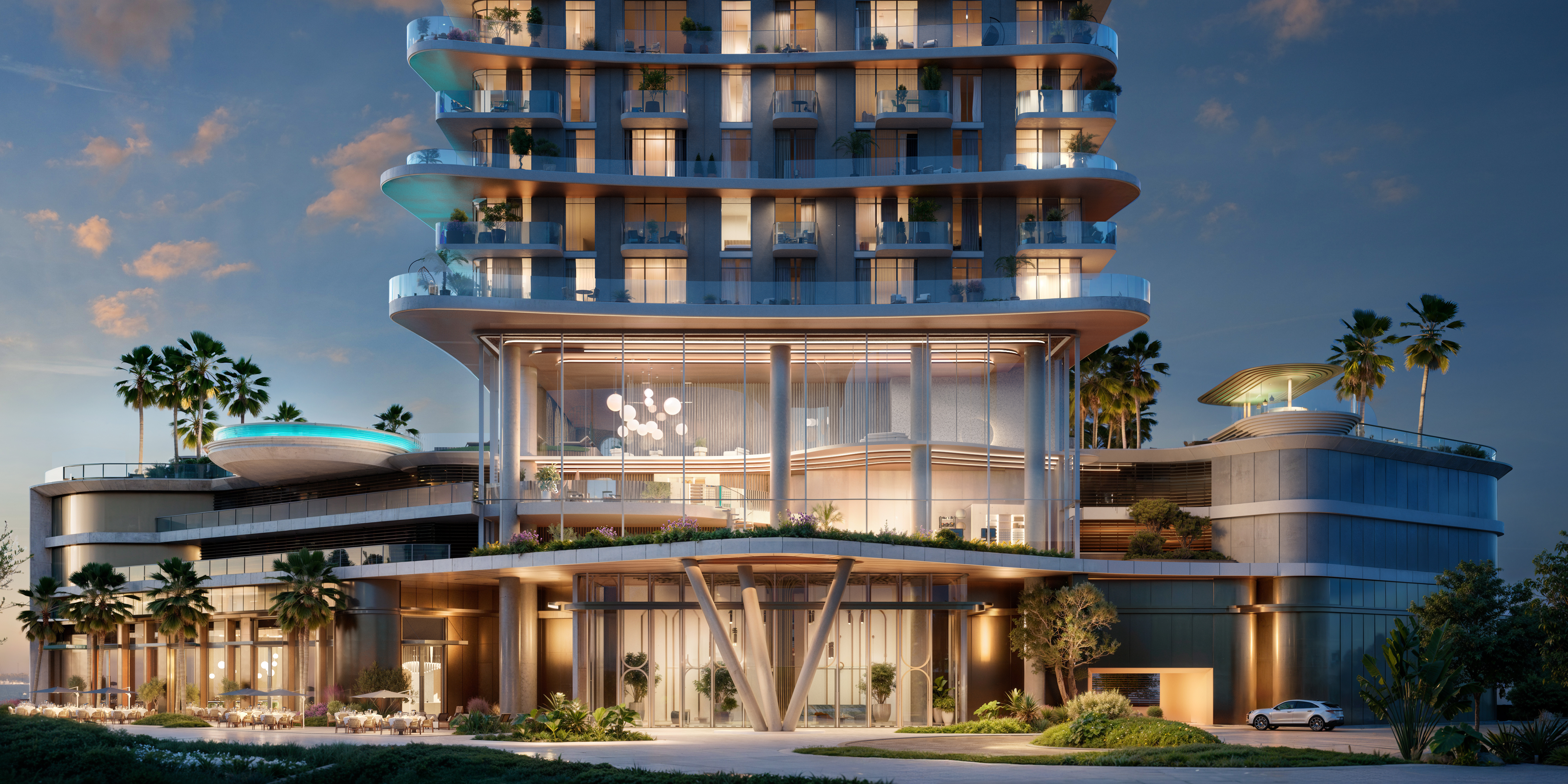 装饰艺术建筑美学:建筑设计受自然律动启发,采用流线型轮廓与360度全景露台,将现代优雅与水岸风情融合。
