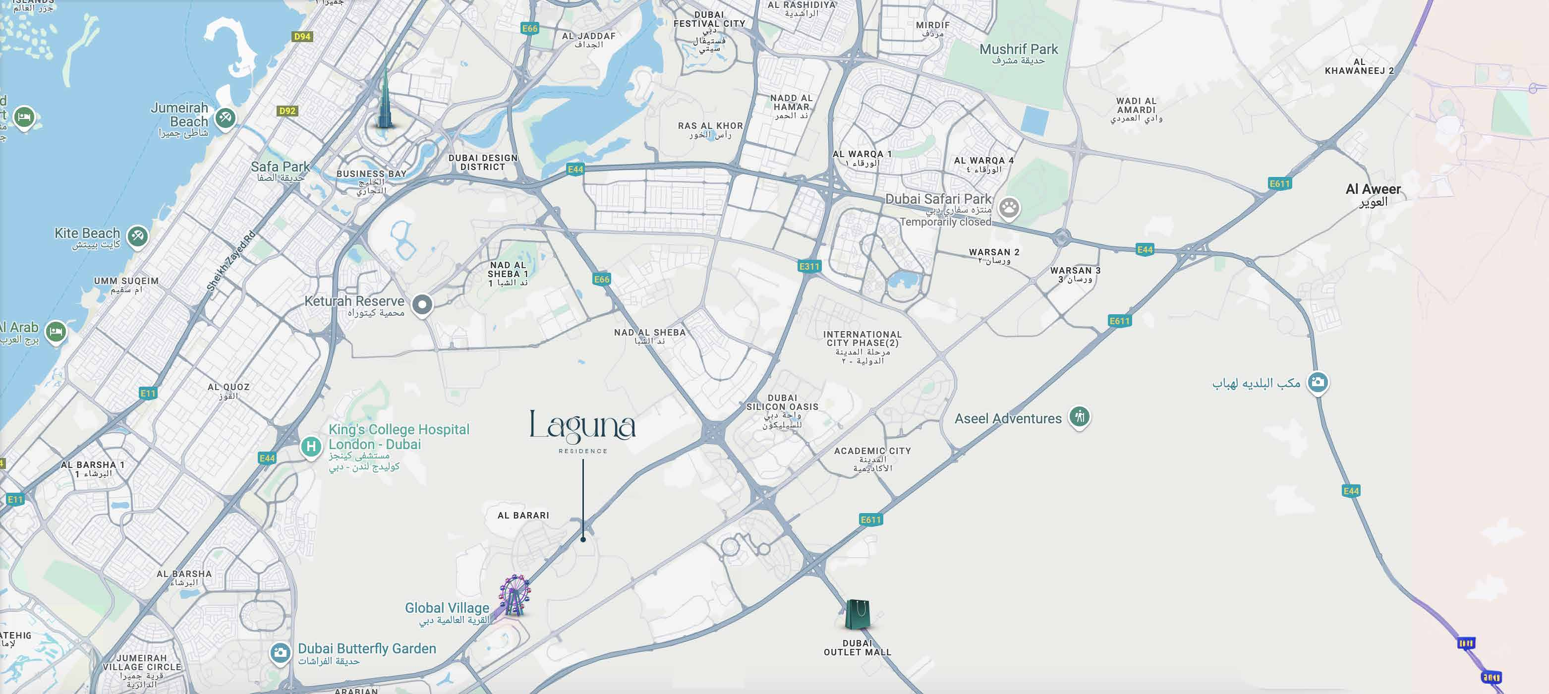快捷通达地标:可顺畅前往迪拜国际机场、马克图姆国际机场以及繁华的市中心、奥特莱斯购物中心和地球村。