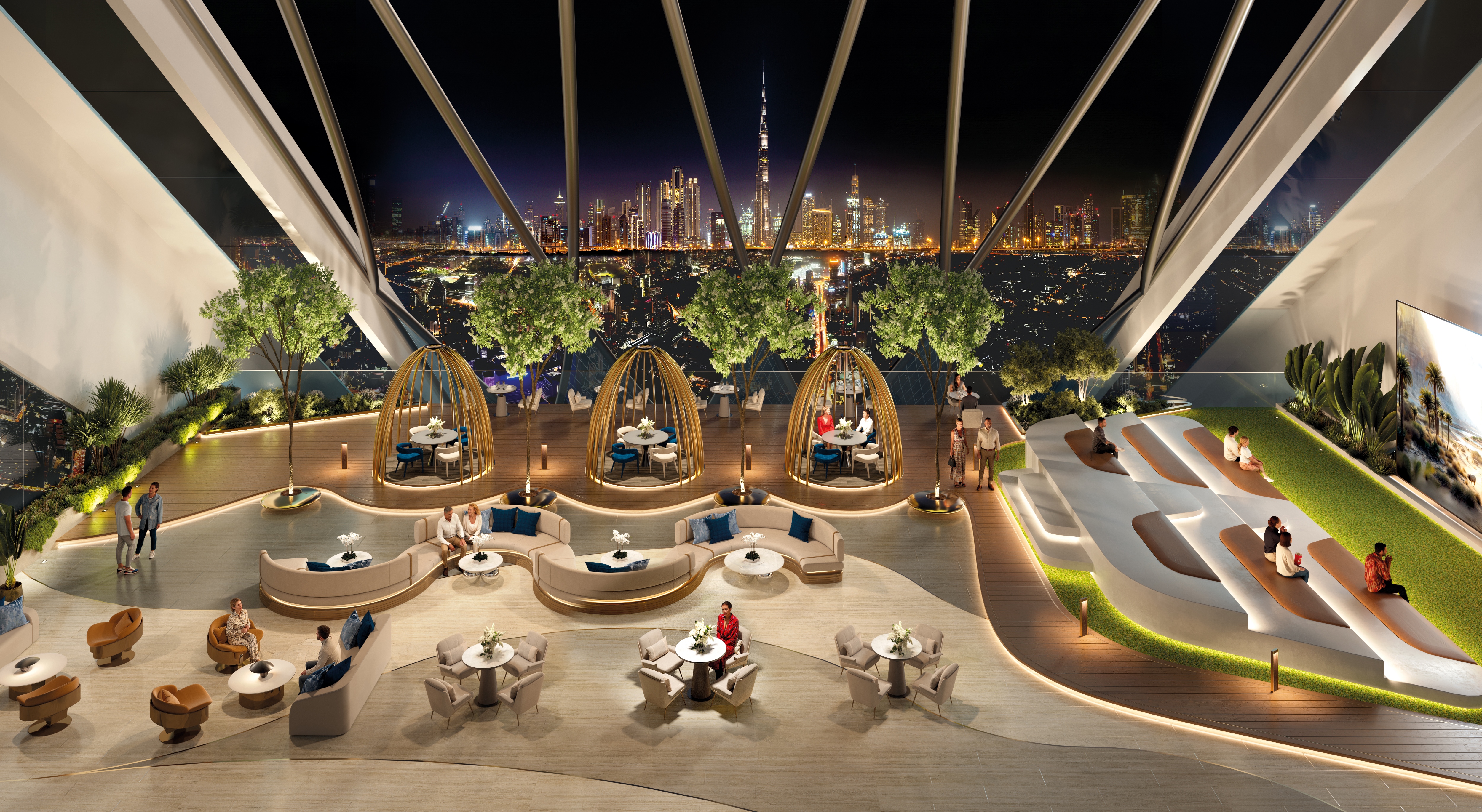 社区内配套:室内外健身房、羽毛球馆、篮球场、足球场、板球场、迷你高尔夫球场等运动场地;无边泳池、浅水池、儿童泳池、按摩浴缸等 aquatic 设施;商务中心、儿童日托中心、祈祷室、图书馆、水疗中心、美容沙龙、健康吧、雪茄区、露天影院、室内外宴会厅等休闲社交空间;花园、烧烤区、户外用餐区、家庭休息区等景观与活动区域,满足日常休闲与社交需求。