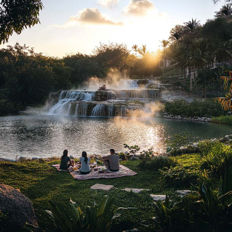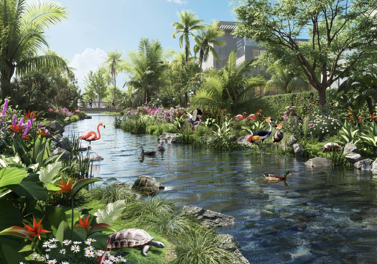 社区内:中央枢纽喷泉、水上乐园、温泉水疗中心、健身公园、街头健身公园、瑜伽浮动平台、迷你高尔夫岛、瀑布泻湖、皮划艇(贡多拉风格)、丛林河、滑索、丛林秋千、婚礼场地、私人游船派对区、伊瓜纳斯公园及水果市场、陆龟花园、鹦鹉公园、野生动物公园等