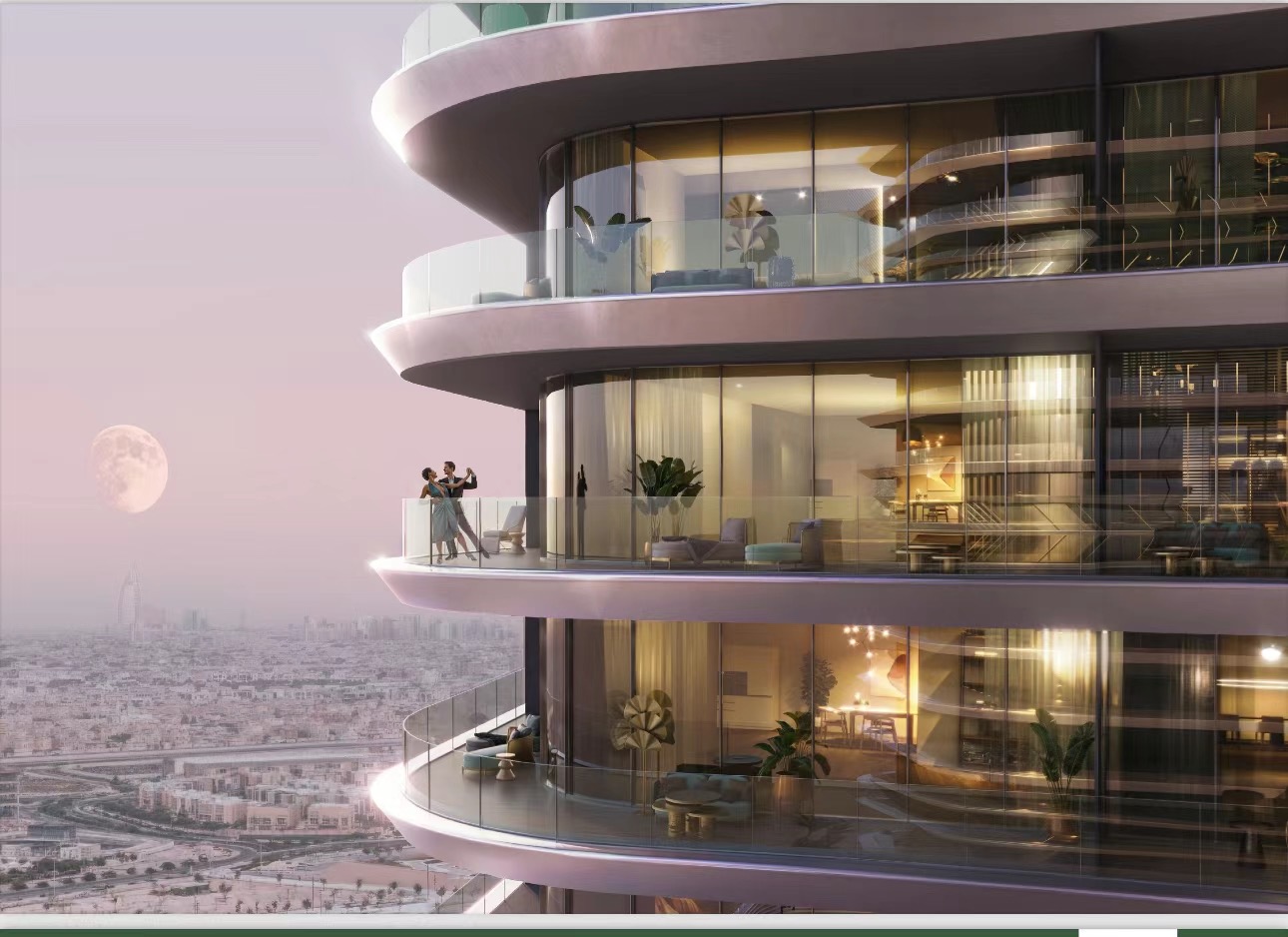 Binghatti 山庄的设计灵感来源于迪拜的自然地形轮廓,灵动的建筑外观体现了未来元素,弧形的结构体现了新式住宅的风格。