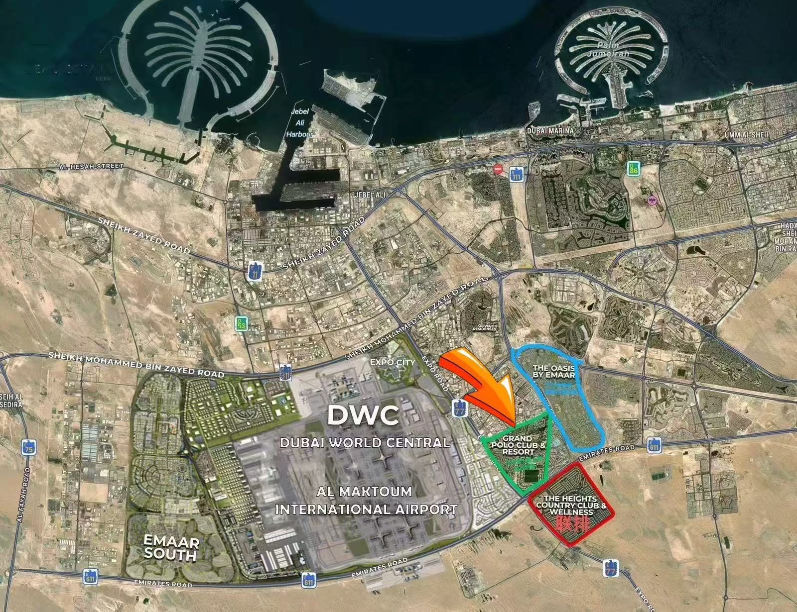 Grand Polo 位于迪拜南部,周边是迪拜未来重点发展的版块: