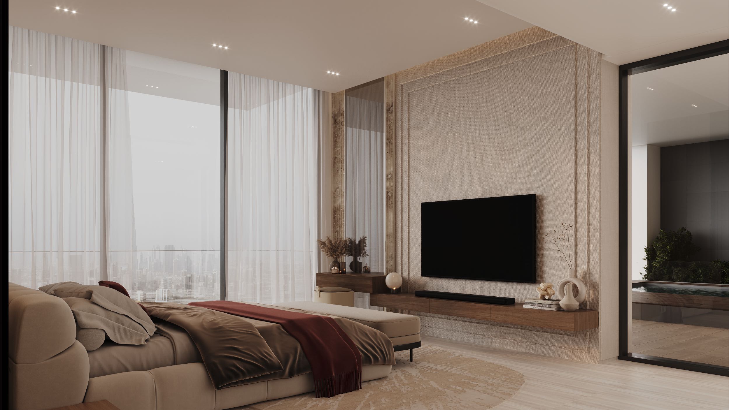 每间公寓均配备3.2米高的室内挑高,创造开阔感与舒适感,简约风格的内饰无不彰显设计师的独到眼光。
